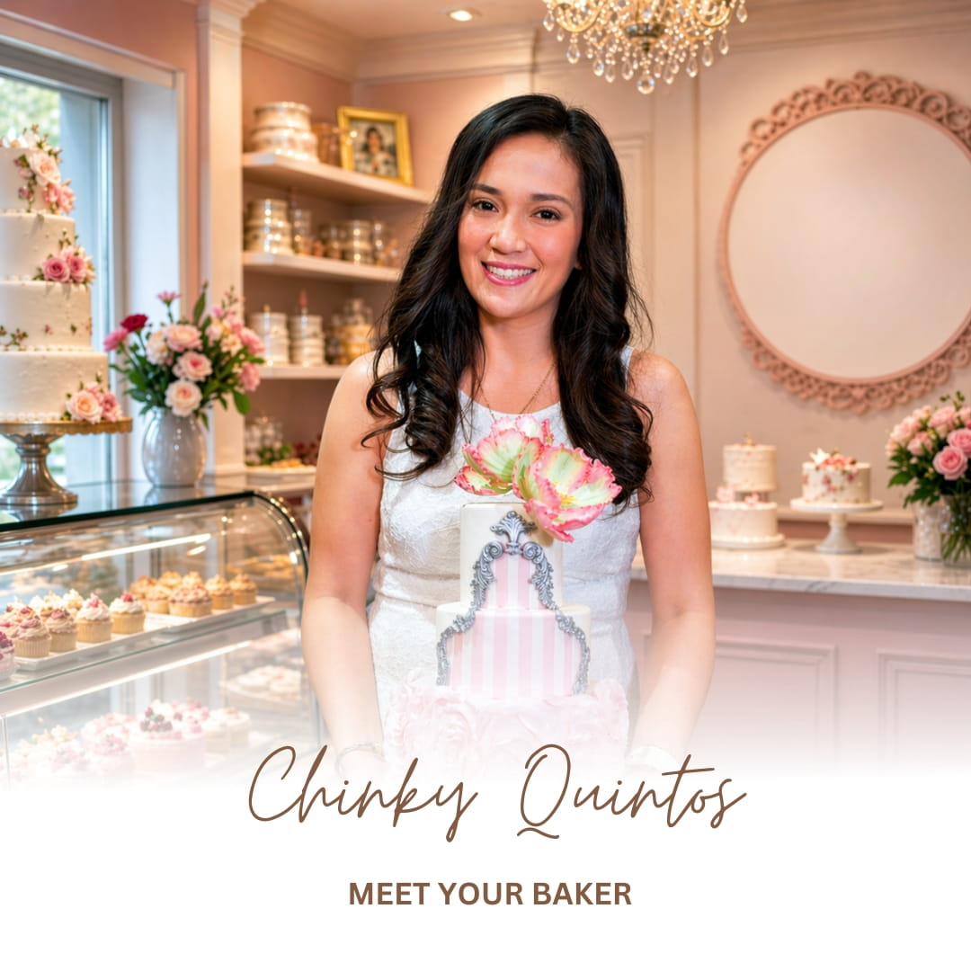 Born out of love and passion for baking, sole proprietor and cake decorator Chinky began her journey into the craft as a child making tasty homemade desserts as an outlet for her abundant creativity and flair. What was once a hobby became a full-fledged business specializing in bespoke cake artistry and delectable delights. Chinky has taken up several masterclasses under the esteemed tutelage of world-renowned cake decorators. She is an expert in producing clean lines and sharp edges, handmade sugar flowers, edible 3D sculptures, and complex cake structures made with precision and skill. Learning never stops and Chinky continually takes classes to keep abreast of new techniques and changes in the cake industry.